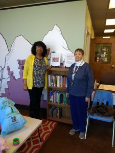 Dot Holman is one special lady.  Since 2011 she has been serving others.  She started an outreach group (Ambassadors Club) at the Maddox Y in Nashville.  They went to nursing homes, providing books, Bibles, food, etc.  Clark says he believes Dot has donated thousands of Bibles to those in need.  She would go to garage sales, estate sales, book store sales—hunting for Bibles.  Most recently Dot has set up mini-libraries for the homeless at the East Nashville Co-op ministry, Matthew 25, New Beginning Baptist Church/Shelter for Homeless Women, and at the Margaret Maddox YMCA.  My mother Ruth Simpson, aka Granny, donated WORK, PLAY, PRAY HARD to the libraries.  Here is  photo of Dot at the East Nashville Co-op in front of her mini library.  Thanks, Mom, for donating books!